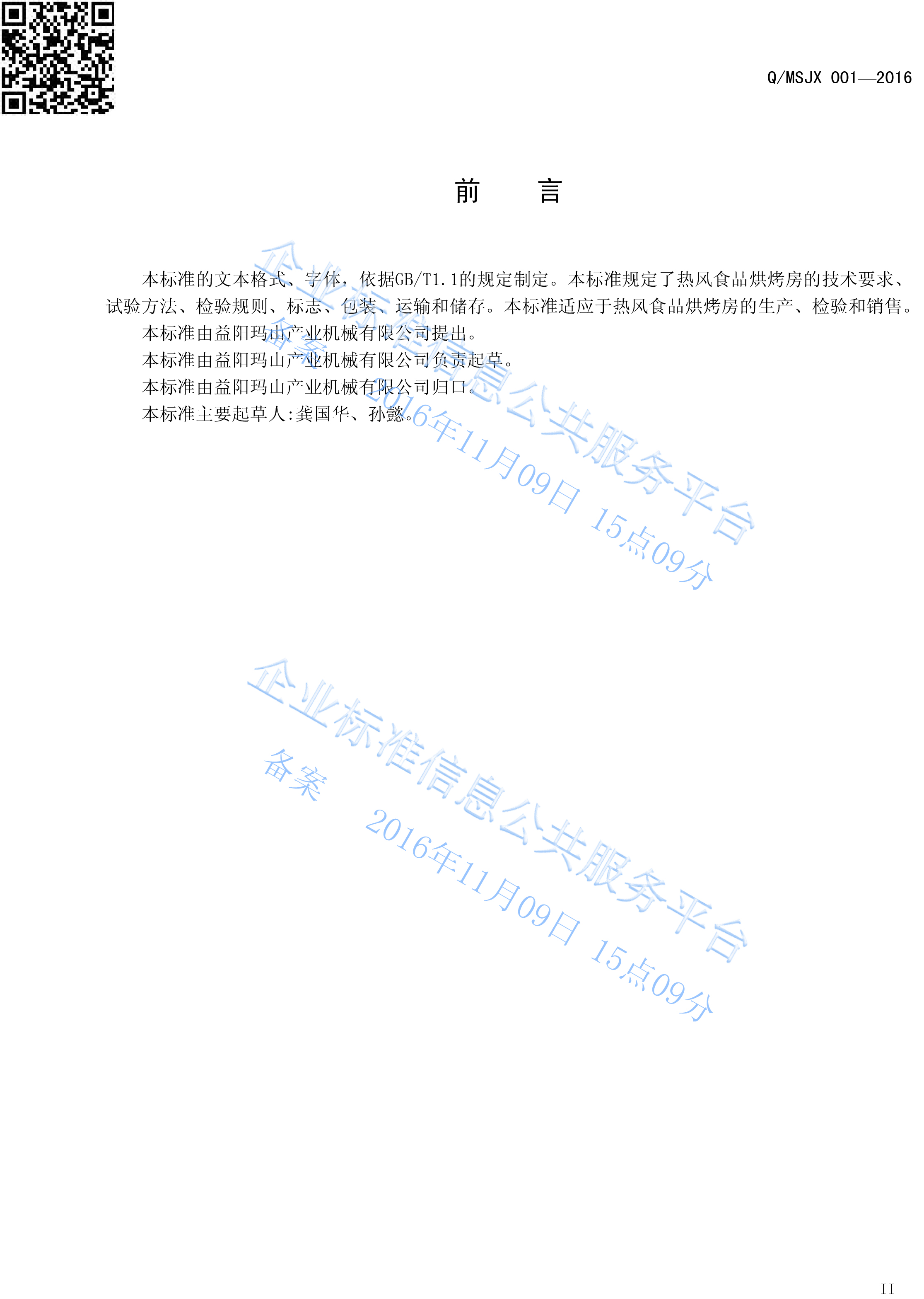 益陽瑪山產(chǎn)業(yè)機(jī)械有限公司熱風(fēng)食品烘烤房企業(yè)標(biāo)準(zhǔn)