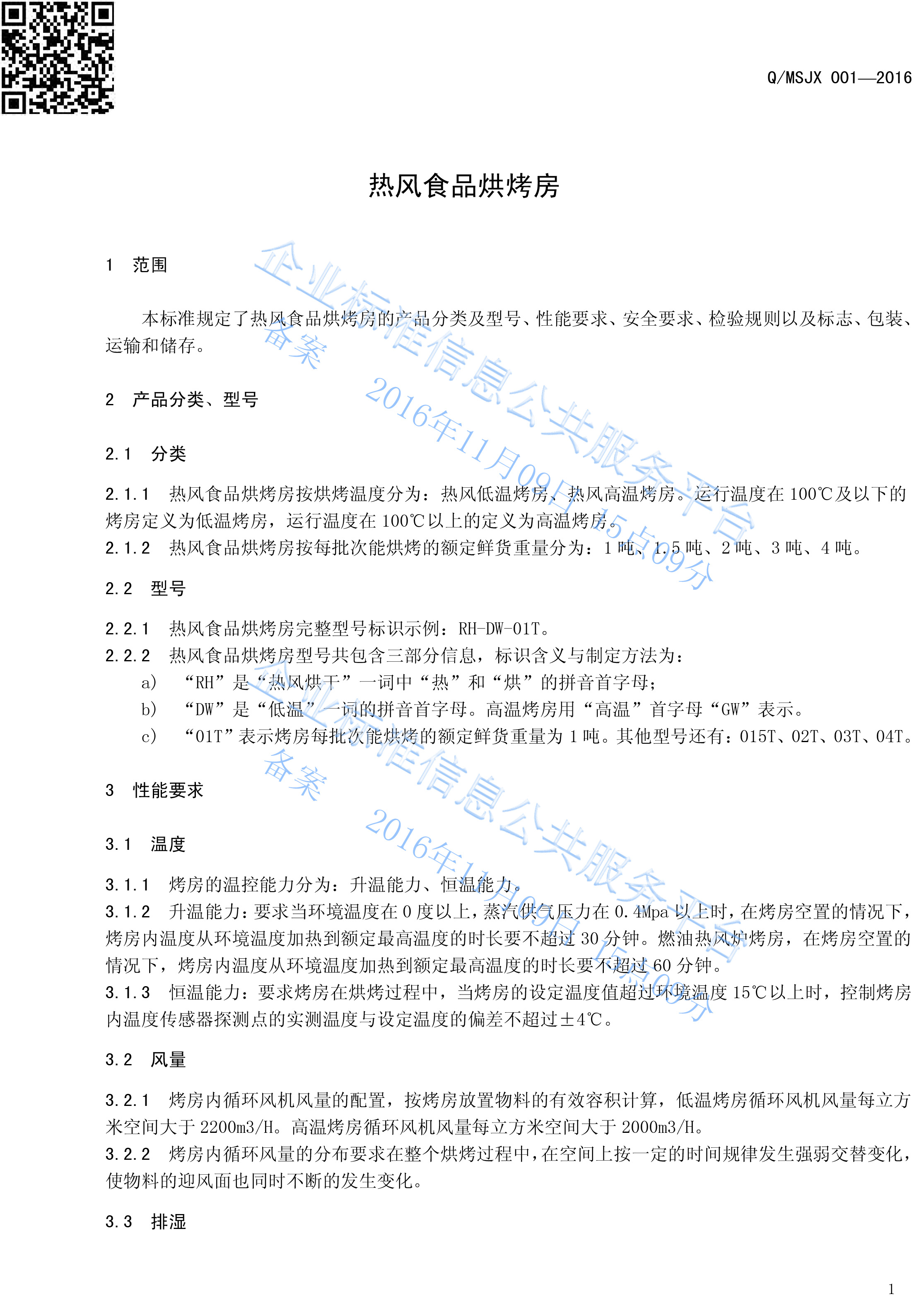 產(chǎn)品名稱:熱風(fēng)食品烘烤房企業(yè)標(biāo)準(zhǔn)