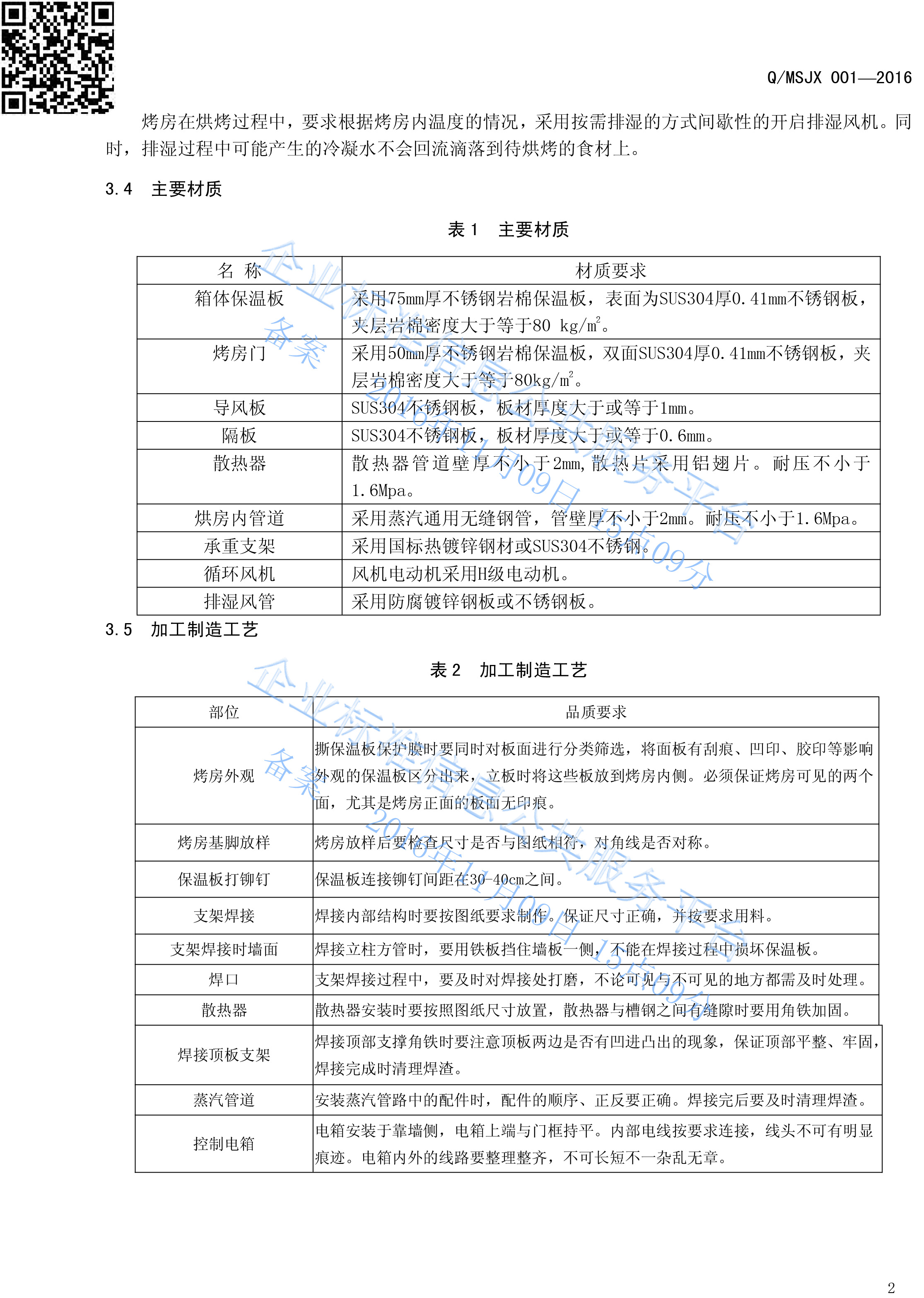 熱風(fēng)食品烘烤房企業(yè)標(biāo)準(zhǔn)